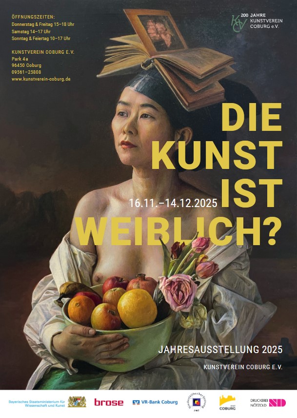 Unter dem Titel "Die Kunst ist weiblich?" findet vom 16.11. bis 14.12.2025 die jurierte Jahresausstellung des mehr als 200 Jahre alten Kunstvereins Coburg statt. Aus fast 200 Bewerbungen wurde auch Michael Gatzke ausgewählt und zeigt eine großformatige Leinwandarbeit.